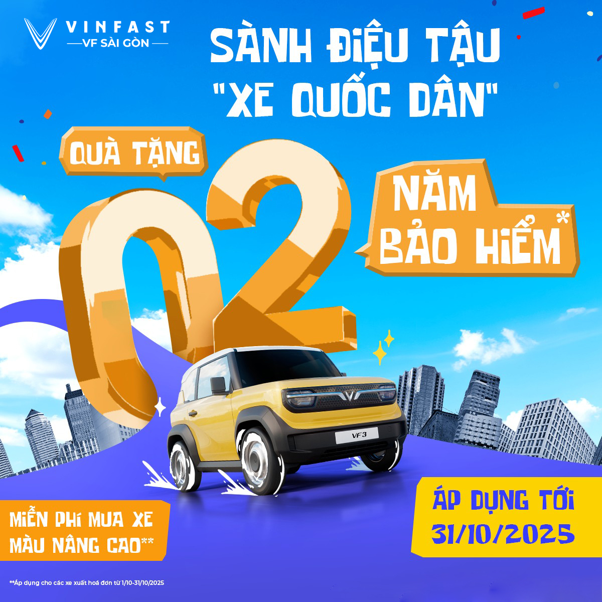 Khách hàng mua xe VF 3 trong thời gian từ 01/10 – 31/10/2025 sẽ được tặng ngay: