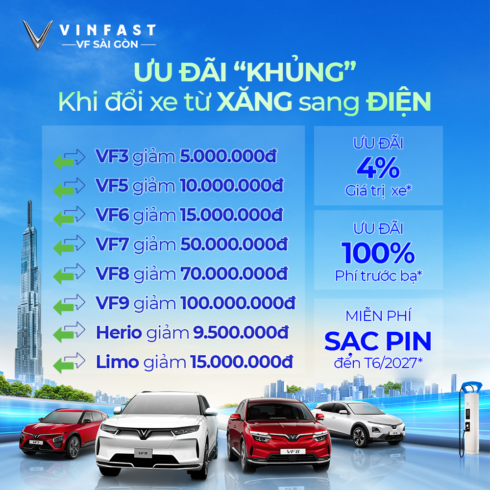 CHÀO HÈ RỰC RỠ, ƯU ĐÃI HẾT CỠ LÊN ĐẾN 110 TRIỆU TRONG THÁNG 10 CÙNG VINFAST VF SÀI GÒN